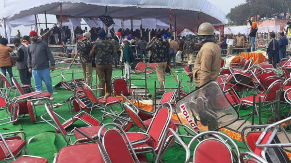 రైతులపై టియర్ గ్యాస్ -సీఎంకు చుక్కలు చూపించారు -మహాపంచాయిత్ వేదిక ధ్వంసం