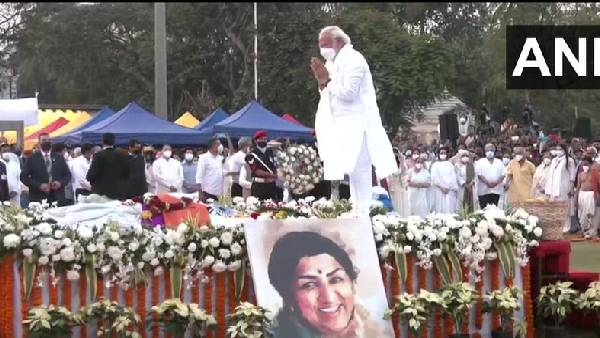 లతా మంగేష్కర్ అంత్యక్రియలకు ప్రధాని మోదీ హాజరయ్యారు. ఆమె భౌతిక కాయానికి నివాళులర్పించారు. అంతిమ సంస్కారాలలో పాల్గొన్నారు. లతా మంగేష్కర్ కుటుంబ సభ్యులకు ప్రగాడ సానుబూతిని తెలిపారు.