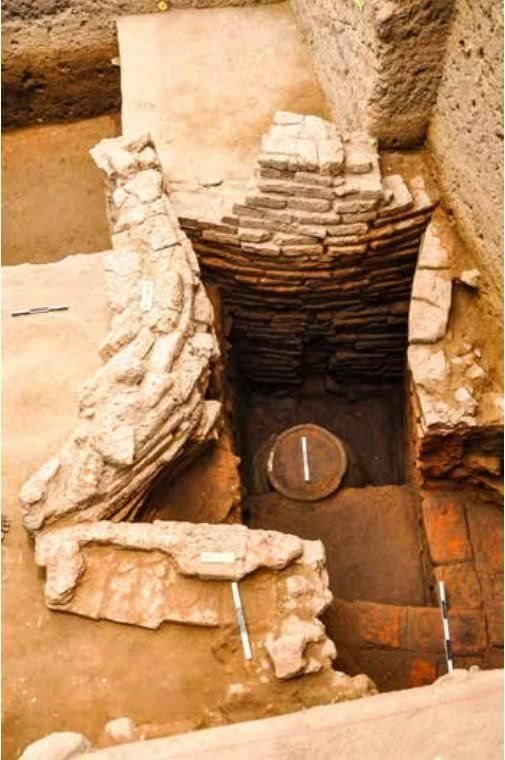 చతురస్రాకారపు ఇటుకల నిర్మాణాన్ని ఇక్కడ కనుగొన్నారు. ఇది 2.35 మీటర్ల పొడవుండి, 29 బ్లాక్లతో పాటు మధ్యలో ఒక క్యారియర్ను కూడా కలిగి ఉంది. సక్కన్ శిలలపై ఈ ఇటుకల నిర్మాణాన్ని నిర్మించారు. అందులో డ్రైనేజీ రంధ్రాలతో కూడిన, 9 దశల వడపోత గొట్టాన్ని అమర్చారు.