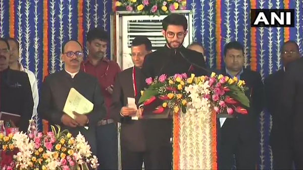 Shiv Sena's Aaditya Thackeray takes oath as minister in Maharashtra Government. pic.twitter.com/ammdFNEuO1