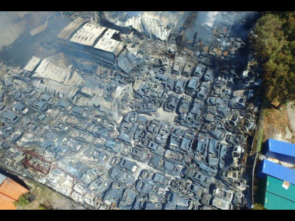 భారీ అగ్ని ప్రమాదం: వందలాది కార్లు, భవనాలు దగ్ధం