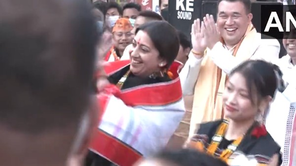 #WATCH | Union Minister Smriti Irani joins artists performing traditional dance at an event in Wangkhei area of Imphal East, Manipur pic.twitter.com/jQtqKMkOJW