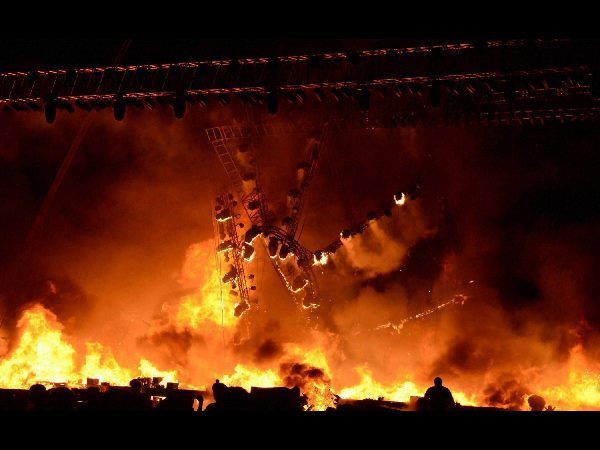 ప్రమాద సమయంలో దాదాపు 500మంది కళాకారులు వేదిక వెనుక భాగంలోనే ఉన్నారు. గాలి కూడా తీవ్రంగా ఉండటం వల్ల మంటలు పూర్తిగా వ్యాపించాయని, మొత్తం వేదిక తగులబడి పోయిందని అధికార వర్గాలు తెలిపాయి. తక్షణమే భారీ ఎత్తున అగ్ని మాపక దళాలను రంగంలోకి దింపడం వల్ల మంటలు త్వరితగతిన అదుపులోకి వచ్చాయని, ఎవరికీ ఎలాంటి ప్రమాదమూ జరుగలేదని వెల్లడించాయి.