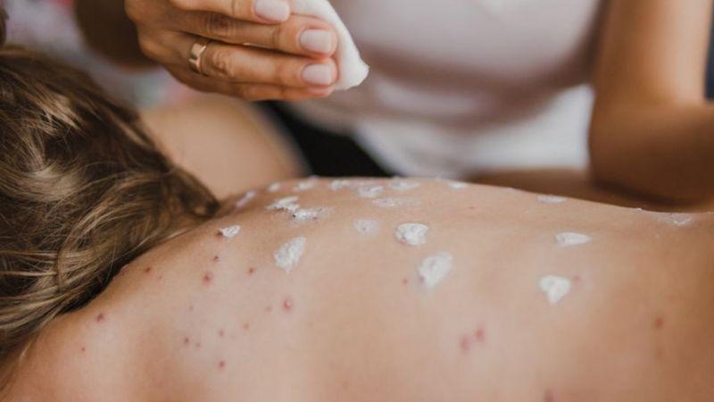 అయిదు నుంచి ఏడు రోజుల తరువాత శరీరంపై ఎర్రటి పొక్కులు కనిపిస్తాయి. కొన్నిసార్లు నోటిలో తెల్లటి మచ్చలు వస్తాయి.