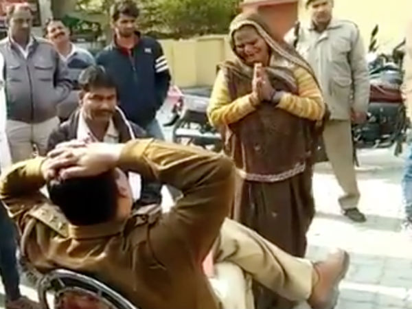 ఈ సందర్భంగా కేసు నమోదు చేయాలని ఆమె పోలీసులను కోరింది. అక్కడే ఉన్న ఇన్స్పెక్టర్ తేజ్ ప్రకాశ్ సింగ్ నిర్లక్ష్యంగా కూర్చొని చోద్యం చూశాడు. ఒక దశలో ఆమె ఇన్స్పెక్టర్ కాళ్లపై పడి ప్రాధేయపడింది. ఈ వీడియో వైరల్ అయింది. దీంతో ఉన్నతాధికారులు చర్యలు తీసుకున్నారు.