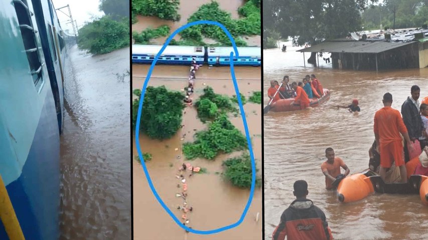 ఇక భారీ వర్షాలకు పలు రైళ్లు నిలిచిపోయాయి. బదల్పూర్ నుంచి వాంగానీ మధ్య నడిచే మహాలక్ష్మీ ఎక్స్ప్రెస్ రైలు ముంబై నగరం అవతల నిలిచిపోయింది. వర్షపు నీరు ట్రాక్పైకి వచ్చేయడంతో ట్రాక్ కనిపించడం లేదు. ఆ రైలులో 2వేల మంది ప్రయాణికులు ఉన్నారు. అయితే ఆ ప్రాంతానికి ఎన్డీఆర్ఎఫ్ బృందాలు చేరుకుని 8 బోట్లలో ప్రయాణికులను తరలించే కార్యక్రమం చేస్తున్నారు. రైలు నిలిచిపోయిన చోట రైల్వే ప్రొటెక్షన్ ఫోర్స్, సిటీ పోలీసులు ఉన్నారు. ప్రయాణికులకు బిస్కెట్లు, నీళ్లు అందజేస్తున్నారు.