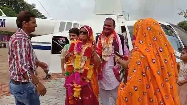 కాగా, గ్రామంలో ఆ హెలికాప్టర్ నుంచి కిందికి దిగిన ఆ ఉపాధ్యాయ దంపతులను గ్రామస్తులు పూలదండలు వేసి స్వాగతం పలికారు. ఈ సందర్భంగా ఉపాధ్యాయుడు రమేష్ చంద్ర మాట్లాడుతూ.. తన పదవీ విరమణ రోజునే తన భార్య చిరకాల కోరికను తీర్చడం ఆనందంగా ఉందని చెప్పారు. స్థానిక అధికారుల సహకారంతో రూ. 3.70లక్షలు ఖర్చు చేసి హెలికాప్టర్ బుక్ చేసినట్లు తెలిపారు. కాగా, తన భర్త ఎప్పుడో చెప్పిన తన కోరికను గుర్తుపెట్టుకుని తీర్చడం పట్ల రమేష్ భార్య పట్టలేని ఆనందాన్ని వ్యక్తం చేసింది.