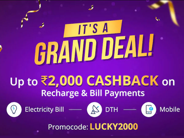 పేటీఎం: రీఛార్జీ, బిల్లు చెల్లింపులపై రూ.2వేల వరకు క్యాష్బ్యాక్