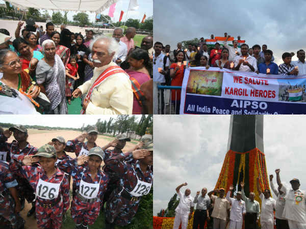 ఏఐపీఎస్ఓ ఆధ్వర్యంలో కార్గిల్ వీరులకు నివాళులు అర్పిస్తున్న దృశ్యం. కార్గిల్ విజయం పదిహేను ఏళ్లు పూర్తయిన సందర్భంగా సికింద్రాబాదులోని అమరవీరుల స్థూపం వద్ద పలువురు శనివారం నివాళులు అర్పించారు.
