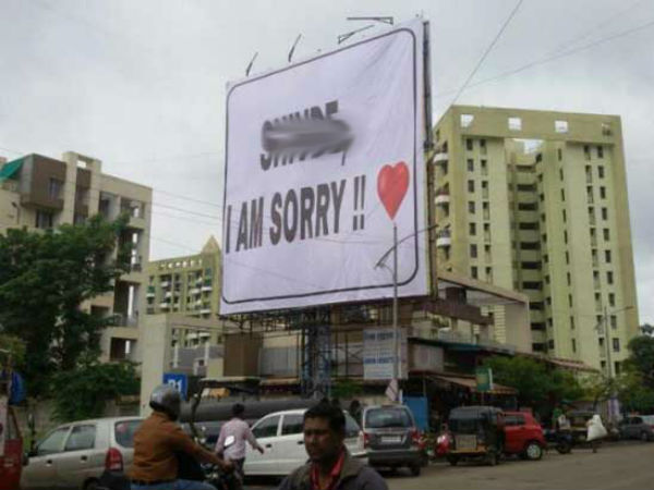 ఆమె వెళ్లే దారిలో, ఇతర రద్దీప్రాంతాల్లో ‘.. ఐ యామ్ సారీ' అంటూ పెద్ద పెద్ద బ్యానర్లు, ఫ్లెక్సీలు, హోర్డింగ్లు కట్టించాడు. గత శుక్రవారం నగరంలో అక్కడక్కడా బ్యానర్లు, హోర్డింగ్లను చూసి పోలీసులు షాకయ్యారు. అనుమతి లేకుండా ఈ హోర్డింగులు పెట్టడంతో పింప్రి చించ్వాడ్ మున్సిపల్ కార్పొరేషన్ కూడా అతనిపై చర్యలు తీసుకునేందుకు సిద్ధమైంది.