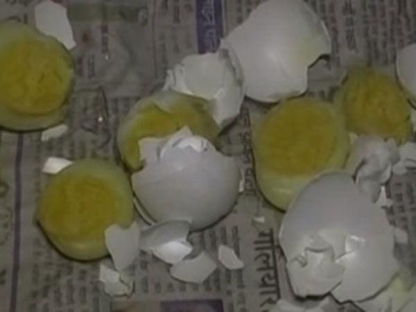 ఈ వ్యవహారంపై స్పందించిన స్థానిక అధికారులు కోడిగుడ్లును పరీక్షించి ఏవైనా రసాయనాలు వాటిలో ఉన్నాయోమో తేలుస్తామని చెప్పారు. ఇటీవల పశ్చిమబెంగాల్లోనూ ఇవే తరహా గుడ్లు కలకలం సృష్టించాయి.