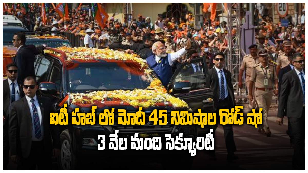 బెంగళూరులోని మాగడి రోడ్డు, నైస్ రోడ్డు జంక్షన్ ల మీద ప్రధాని నరేంద్ర మోదీ రోడ్ షో 45 నిమిషాల పాటు జరగనుంది. ప్రధాని నరేంద్ర మోదీ రోడ్ షో సందర్బంగా డీసీపీలు, ఏసీపీలు, డీఎస్సీలతో పాటు 80 మంది ఎస్ఐలతో సహ 3,000 పోలీసులు భద్రతా ఏర్పాట్లలో ఉంటారని బెంగళూరు సిటీ అధికారులు తెలిపారు. 5 కిలోమీటర్లు 45 నిమిషాల పాటు మోదీ రోడ్ షోలో పాల్గొంటారు.