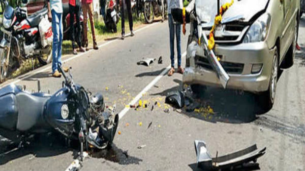 బైకు ఆపలేదని లాఠీ విసిరిన పోలీసు... కంట్రోల్ తప్పి కారును ఢీకొన్న యువకుడు
