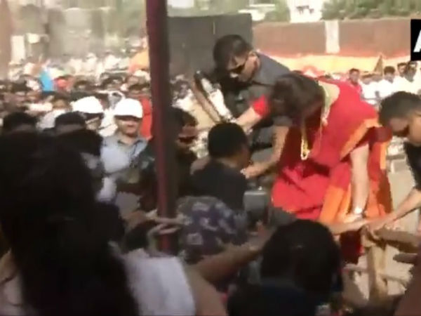 ఎస్పీజీ ప్రొటెక్షన్ ఫోర్స్ సిబ్బంది వద్దని వారించినా.. ప్రియాంక పట్టించుకోలేదు. జనాల పిలుపుతో ముగ్ధురాలైన ప్రియాంక వారి దగ్గరకు చేరి షేక్ హ్యాండ్ ఇచ్చారు. సెక్యూరిటీ కూడా ఏమి చేయలేక పోలోమంటూ ఆమెను ఫాలో అయ్యారు.