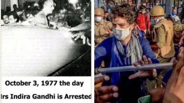 ప్రియాంక గాంధీ అరెస్టును కాంగ్రెస్ శ్రేణులు 1977లో జనతా ప్రభుత్వ హయాంలో జరిగిన ఇందిరాగాంధీ అరెస్టుతో పోలుస్తున్నారు. 1977లో అక్టోబర్ 3న ఇందిరాగాంధీని అరెస్టు చేసిన జనతా సర్కార్ ఆ తర్వాత రద్దయిందని, ఇప్పుడు అదే అక్టోబర్ 3న ప్రియాంక గాంధీని అరెస్టు చేసిన యోగీ సర్కార్ కు కూడా కాలం చెల్లబోతోందని కాంగ్రెస్ నేత సునీల్ జాఖడ్ ఓ ట్వీట్లో వ్యాఖ్యానించారు. మరో కాంగ్రెస్ నేత బీవీ శ్రీనివాస్ ఇదే ఘటనపై స్పందిస్తూ ఇందిర తిరిగొచ్చినట్లుుందని మరో ట్వీట్లో పేర్కొన్నారు. మరోవైపు తన సోదరి ప్రియాంక గాంధీ అరెస్టుపై స్పందించిన రాహుల్ గాంధీ.. ప్రియాంక నువ్వు వెనుదిరగవని నాకు తెలుసు, వాళ్లు నీ ధైర్యం చూసి భయపడుతున్నారంటూ యోగీ సర్కార్ ను ఉద్దేశించి వ్యాఖ్యానించారు. ఈ అహింసా పోరాటం ద్వారా మనం ఈ దేశ అన్నదాతల్ని గెలిపించబోతున్నామంటూ ట్వీట్లో తెలిపారు.