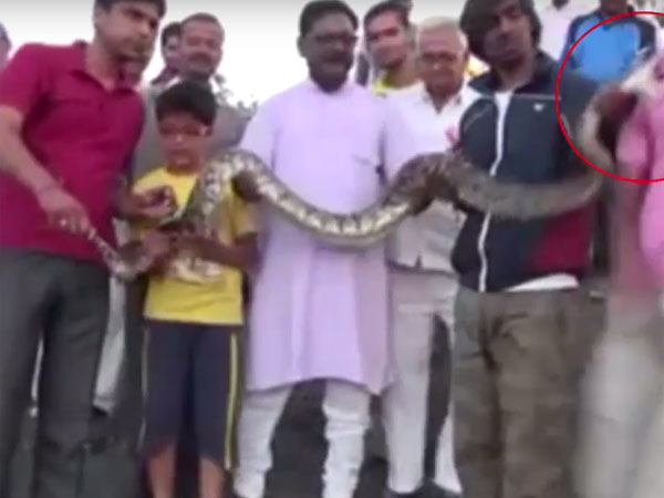 కొండ చిలువకు మరీ దగ్గరగా వచ్చిన ఆ వ్యక్తి తన సెల్ఫోన్తో సెల్ఫీ దిగపోయాడు. అంతలోనే కొండచిలువ అతని మీదకు బుసకొట్టి చొక్కాను నోట కరచుకుంది. కొండ చిలువ దాడితో హడలెత్తిన ఆ వ్యక్తి పక్కకు తొలగపోయి కింద పడిపోయాడు.