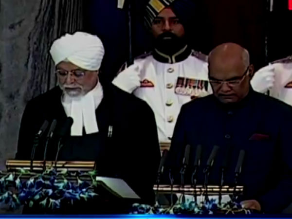 ఏపీ సీఎం చంద్రబాబునాయుడు, తెలంగాణ ముఖ్యమంత్రి కే చంద్రశేఖర్ రావు ఈ కార్యక్రమానికి హాజరయ్యారు. కాగా, అధికార ఎన్డీయే కూటమి అభ్యర్థి గా బరిలో దిగిన రామ్నాథ్.. విపక్ష అభ్యర్థి మీరాకుమార్పై 65.5 శాతం ఓట్ల తేడాతో విజయం సాధించిన విషయం తెలిసిందే. రాష్ట్రపతి పదవిని చేపట్టిన రెండో దళిత వ్యక్తిగా కోవింద్ గుర్తింపు పొందారు.