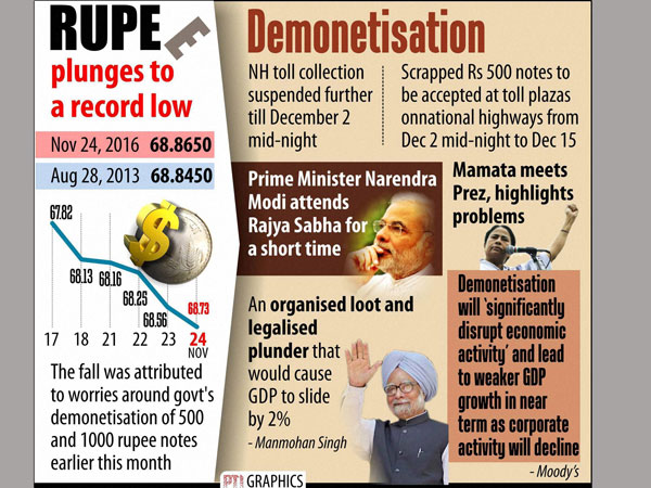 ఇప్పుడు ఆ పరిస్థితికి అవకాశాలు కనిపించడం లేదు. కారణం.. ట్రంప్ గెలుపు అనంతరం అమెరికాలో చోటుచేసుకుంటోన్న పరిణామాలే. ఆర్బీఐ ఎంత జోక్యం చేసుకుంటున్నప్పటికీ, దిగుమతిదార్ల నుంచి డాలర్లకు గిరాకీ ఎక్కువగా ఉండటంతో రూపాయి నేలచూపులు చూడక తప్పడం లేదు. తాజా జీవనకాల కనిష్ఠమైన 68.86ను తాకిన రూపాయి.. మరికొన్ని రోజుల్లో 70కు పడిపోయే అవకాశాలూ లేకపోలేదంటున్నారు విశ్లేషకులు.