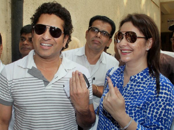 <blockquote class="twitter-tweet blockquote" lang="en"><p>I have voted, am sure you have too !! <a href="http://t.co/bpIMhvG4Pm">pic.twitter.com/bpIMhvG4Pm</a></p>— sachin tendulkar (@sachin_rt) <a href="https://twitter.com/sachin_rt/status/522296357491445760">October 15, 2014</a></blockquote> <script async src="//platform.twitter.com/widgets.js" charset="utf-8"></script>ముంబయిలోని బాంద్రాలో భార్య అంజలితో కలిసి సచిన్ ఓటు హక్కును వినియోగించుకున్నాడు. అంతకుముందు, మంగళవారం నాడు సచిన్, ప్రజలందరూ తమ ఓటు హక్కును వినియోగించుకోవాలని ట్విటర్లో కోరాడు. బాధ్యతాయుతమైన పౌరుడిగా వ్యవహరించేందుకు పోలింగ్ దినం తగిన రోజని పేర్కొన్నాడు.