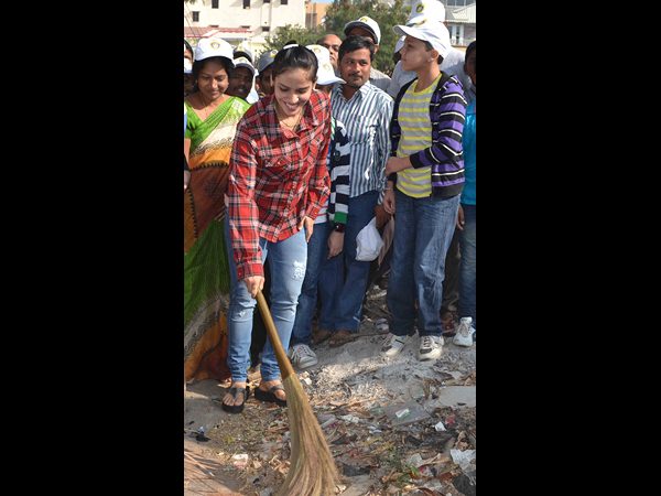భారత ఏస్ షట్లర్ సైనా నెహ్వాల్ గురువారం నాడు హైదరాబాదులోని బంజారాహిల్స్లో స్వచ్ఛ భారత్ అభియాన్ కార్యక్రమంలో పాల్గొన్నారు.