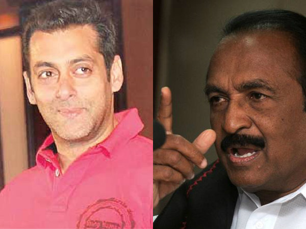 ఎండిఎంకె అధినేత వైగో సల్మాన్ ఖాన్పై తీవ్ర స్థాయిలో విరుచుకుపడ్డారు. తమిళుల మనోభావాలకు వ్యతిరేకంగా వ్యవహరిస్తున్న సల్మాన్ ఖాన్ ఓ నమ్మక ద్రోహి అని విమర్శించారు. కాగా, తమిళనాడులో సల్మాన్కు వ్యతిరేకంగా పలు రాజకీయ పార్టీలు నిరసన ప్రదర్శనలు చేపట్టాయి.