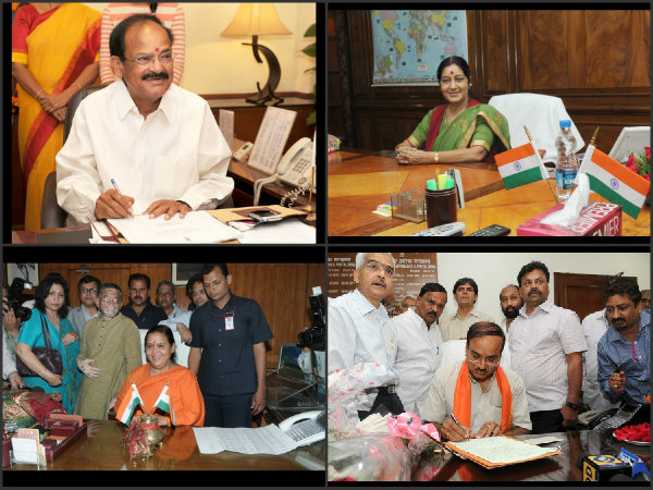 సుష్మా, వెంకయ్య..: మంత్రులుగా బాధ్యతలు(పిక్చర్స్)