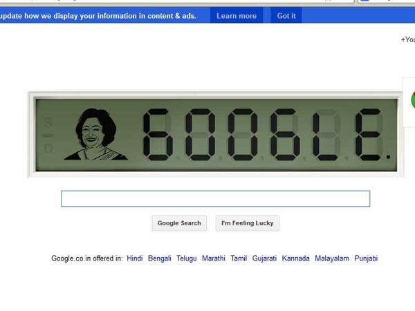 హ్యూమన్ కంప్యూటర్ శకుంతలాదేవికి గూగుల్ నివాళి