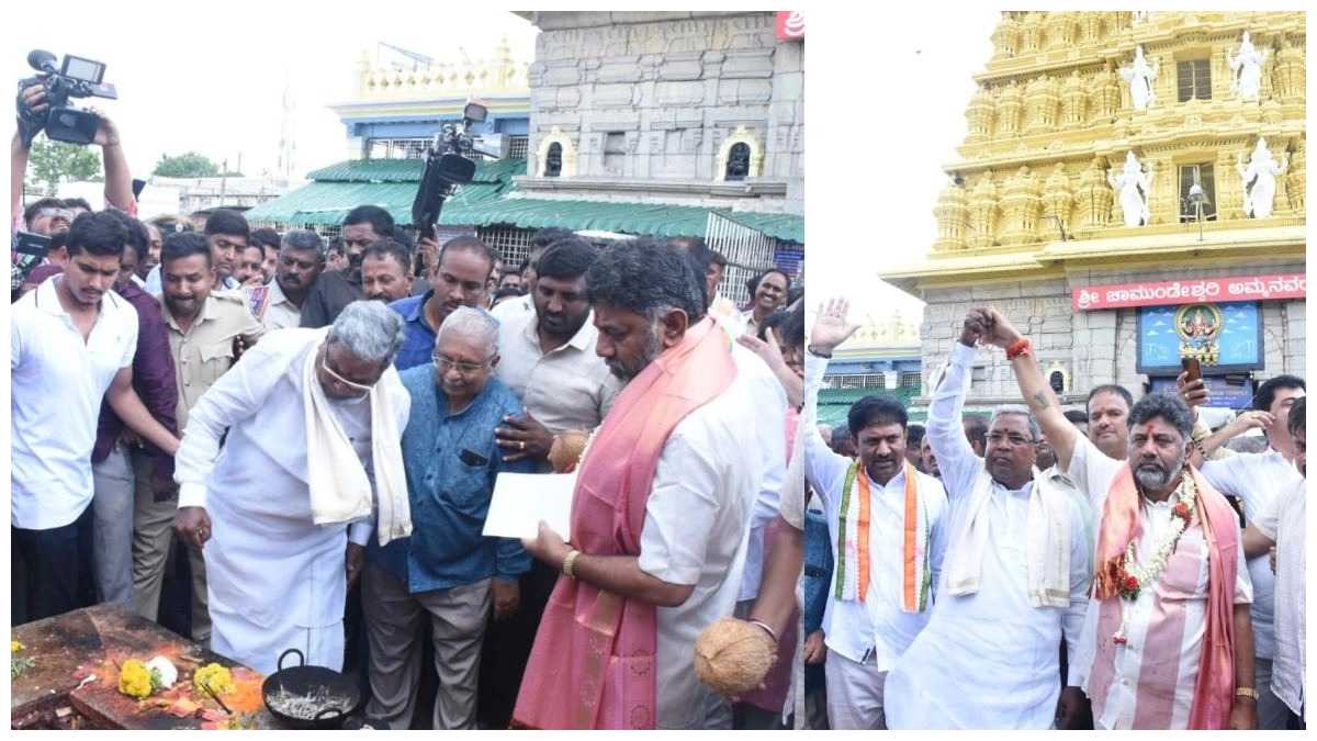 మేము కలిసే ఉన్నామని చెప్పడానికి ఇద్దరూ నాయకులు చాముండికొండ మీదకు వెళ్లి అమ్మావారిని దర్శనం చేసుకున్నారు. అయితే మీడియా కంటపడిన సిద్దరామయ్య, డీకే. శివకుమార్ మేము ఇక్కడికి అమ్మవారి దర్శనం కోసం వచ్చామని చెప్పారు. అయితే మాజీ సీఎం సిద్దరామయ్య కాని, డీకే శివకుమార్ కాని రాజకీయాల గురించి ఒక్కమాట కూడా మాట్లాడకుండా అక్కడి నుంచి వెళ్లిపోయారు.