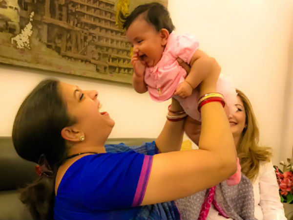ముంబై: బోసినవ్వులతో చూడగానే ముద్దొచ్చే చిన్నారులంటే ఎవరికి మాత్రం ఇష్టముండదు. వాళ్లను ఆడిస్తూ.. లాలిస్తూ.. అలానే ఉండిపోవాలనిపిస్తుంది. అంతలా మాయ చేస్తారు పిల్లలు. తాజాగా కేంద్రమంత్రి స్మృతి ఇరానీని కూడా ఓ చిన్నారి మాయ చేసింది.
