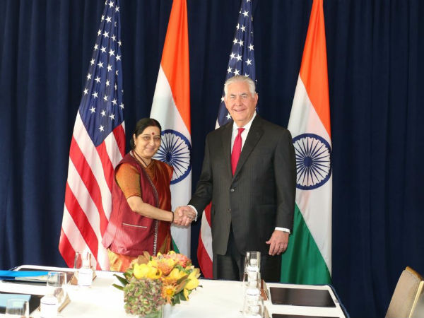 ఐక్యరాజ్యసమితి సార్వత్రిక అసెంబ్లీ సమావేశాల్లో పాల్గొనడానికి న్యూయార్క్ వచ్చిన సందర్భంగా సుష్మా స్వరాజ్.. అమెరికా విదేశాంగ మంత్రి రెక్స్ టిల్లర్సన్ తో భేటీ అయ్యారు. సుష్మా-టిల్లర్సన్ భేటీ ఇదే తొలిసారి.