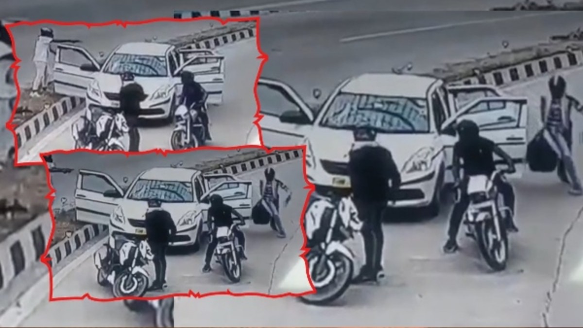 తరువాత క్యాబ్ లో ఉన్న వాళ్లను రివాల్వర్లతో బెదిరించి వారి దగ్గర ఉన్న బ్యాగులు ఎత్తుకుని వెళ్లిపోయారు. నిందితులు క్యాబ్ ను అడ్డగించి నడిరోడ్డు మీద నిలువు దోపిడీ చేస్తున్న సమయంలో పరిసర ప్రాంతాల్లో ఏర్పాటు చేసిన సీసీటీవీ కెమెరాల్లో రికార్డు అయ్యింది. ఆ సందర్బంలో నిందితులు కారులో ఉన్న వారికి రివాల్వర్ చూపించి బెదిరిస్తూ అక్కడి నుంచి పరారైనారు.