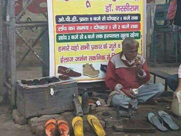 ఈ ఏడాది ఏప్రిల్ నెలలో ఓ రోజు ఆనంద్ మహీంద్ర తన ఆఫీసుకు వెళుతూ ఫుట్ పాత్ పైన చెప్పులు కుట్టుకునే నర్సీరాం అనే ముసలాయనను చూశాడు. అంతకంటే ఆనంద్ మహీంద్రాను ఆకట్టుకుంది ఆ నర్సీరాం డిస్ప్లే చేసిన బోర్డు. ఇంతకీ ఆ బోర్డులో ఏమి రాసిందో తెలుసా.. జక్మీ జూతో కా హాస్పిటల్ అని హిందీలో రాసి ఉంది. గాయపడ్డ బూట్లకు ఇక్కడ చికిత్స చేయబడును అని దీని అర్థం.నర్సీరాం పెట్టిన బోర్డుపై పనివేళలు కూడా దర్శనమిచ్చాయి. నర్సీరాం మార్కెటింగ్ నైపుణ్యత ఆనంద్ మహీంద్రను కట్టిపడేసింది. వెంటనే కారులోనుంచే అతని ఫోటో తీసుకుని ట్వీట్ చేశాడు. ఇండియన్ ఇన్స్టిట్యూట్ ఆఫ్ మేనేజ్మెంట్లో ఈ వ్యక్తి మార్కెటింగ్ పాఠాలు చెప్పాల్సిన వాడు అంటూ ట్వీట్ చేశారు. తన ఆఫీసుకు వెళ్లిన తర్వాత నర్సీరాం గురించి తన సహచరులతో పంచుకున్నాడు.