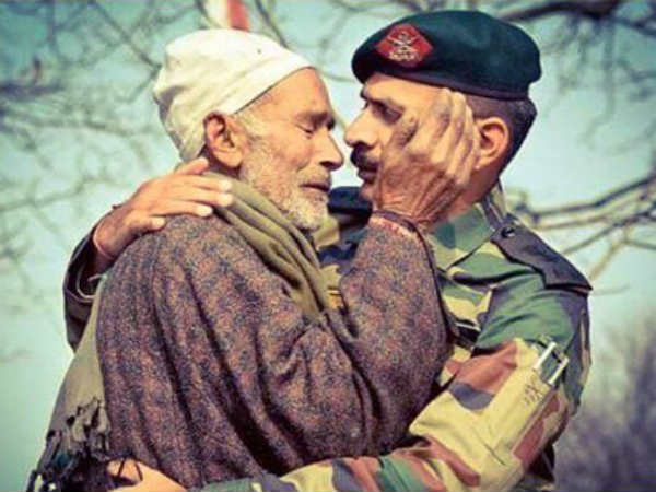 ఇదిగో ఇక్కడి ఫోటో చూశారుగా... ఈ ఫోటోకున్న ప్రత్యేకత ఏంటంటే ఈ చిత్రాన్ని చూసిన ప్రతి ఒక్కరు కంటనీరు పెడుతున్నారు. ఇది అంతలా హృదయాలను కదిలిస్తోంది. ఓ తండ్రిని కొడుకు కౌగలించుకున్న ఫోటోలా ఉంది కదూ. అవును.. అయితే ఈ ఫోటోలు ఉన్నది తండ్రీ కొడుకులు కాదు. తన కొడుకు ఉగ్రవాదులతో పోరాడుతూ వీరమరణం పొందడంతో కన్నీరు మున్నీరు అవుతున్న ఆయన్ను మరో ఆర్మీ ఆఫీసర్ ఓదారుస్తున్నారు. "నువ్వు ఒంటరి వాడివి కాదు...దేశం నీవెంట ఉంది"అంటూ రాసి ఉన్న ఫోటోను ట్విటర్లో పోస్టు చేశారు. ఇది వైరల్ అయ్యింది.