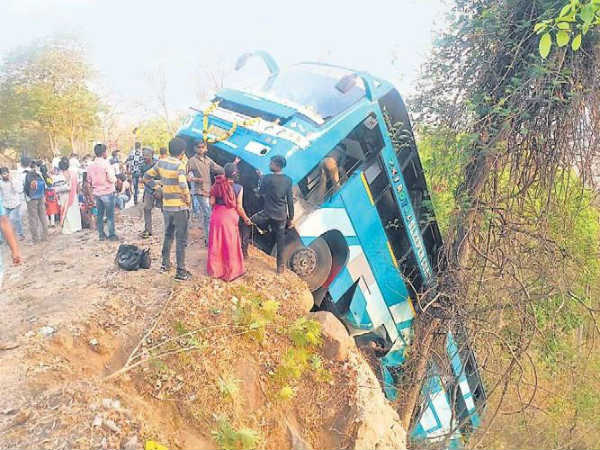 సూరత్: గుజరాత్ లో ఘోర రోడ్డు ప్రమాదం తృటిలో తప్పింది. 70 మంది ప్రయాణికులతో వెళ్తున్న బస్సు ప్రమాదానికి గురైంది. అదుపు తప్పి లోయలోకి జారిపడబోయింది. ఆ సమయంలో చెట్లు అడ్డుగా రావడంతో పెను ప్రమాదం తప్పింది. జీజే 04 జడ్ 0933 నంబర్ గల బస్సు మహారాష్ట్రలోని షిర్డీ నుంచి గుజరాత్ లోని సూరత్ కు బయలుదేరింది. సుమారు 70 మంది పర్యాటకులు బస్సులో ఉన్నారు. వారిలో పలువురు మహిళలు, చిన్న పిల్లలు ఉన్నారు. షిర్డీ సాయినాథున్ని దర్శించుకున్న అనంతరం వారంతా స్వస్థలమైన సూరత్ కు బయలుదేరారు.