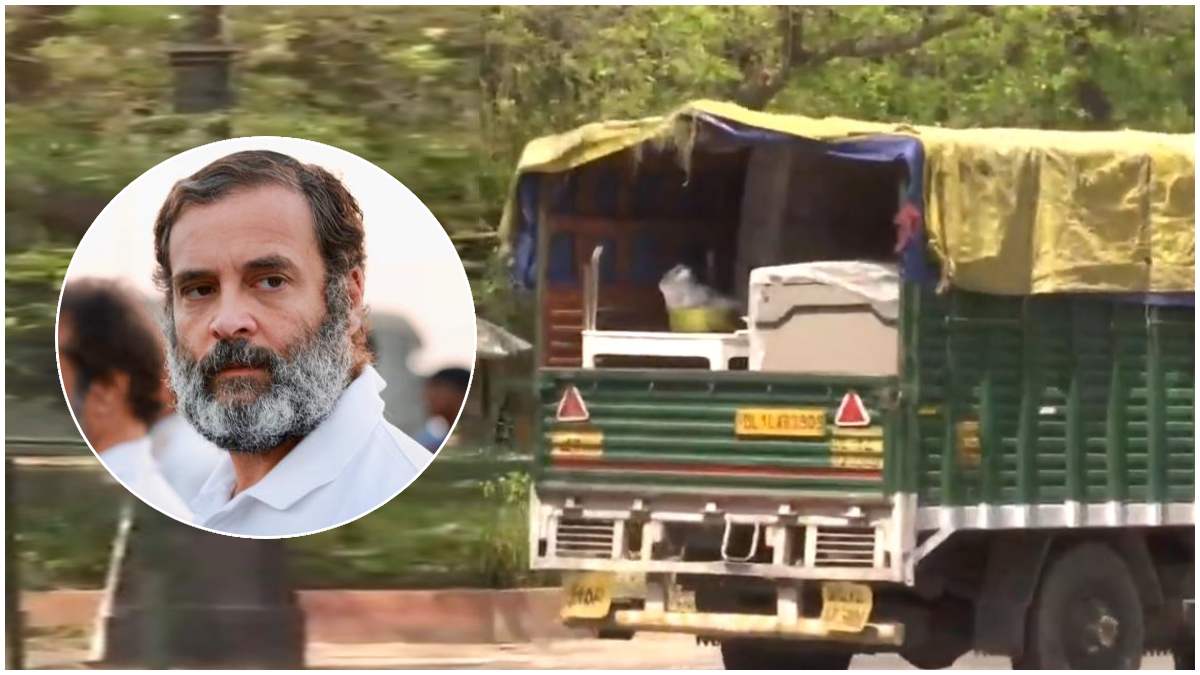 #WATCH | Delhi: Trucks leave from Rahul Gandhi's 12 Tughlak Lane bungalow as he vacates the residence after his disqualification as a Lok Sabha MP. pic.twitter.com/CEvWhMeev9