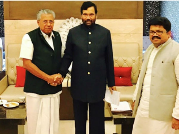 కేంద్ర మంత్రి రాంవిలాస్ పాశ్వన్ ను కేరళ ముఖ్యమంత్రి పినరయి విజయన్ కలిశారు. అయితే కేరళ ముఖ్యమంత్రీ శ్రీ పన్నీర్ సెల్వం, ఆయన అధికార బృందంతో భేటీ అయ్యాను అంటూ కేంద్ర మంత్రి రాంవిలాస్ పాశ్వాన్ ఓ ఫోటో .