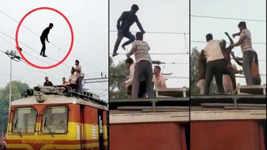 వీడియో వైరల్: రైల్వే కరెంట్ తీగలపై వ్యక్తి సర్కస్ ఫీట్లు..సిబ్బంది ఎలా కాపాడారో చూడండి