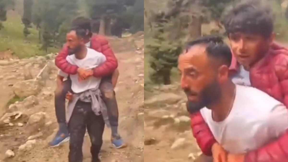 In the face of terror, humanity spoke louder. A Kashmiri risking his life to rescue an injured tourist boy — this is the real Kashmir. Not defined by violence, but by compassion, courage and love. Let the world see who we truly are..#PahalgamTerroristAttack… pic.twitter.com/16PkuPtVuQ