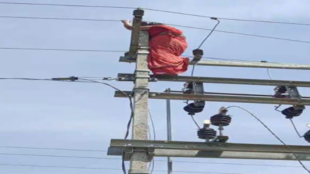 భర్త, ప్రియుడు ఇద్దరూ కావాలి: కరెంట్ పోల్ ఎక్కి మహిళ ఆందోళన