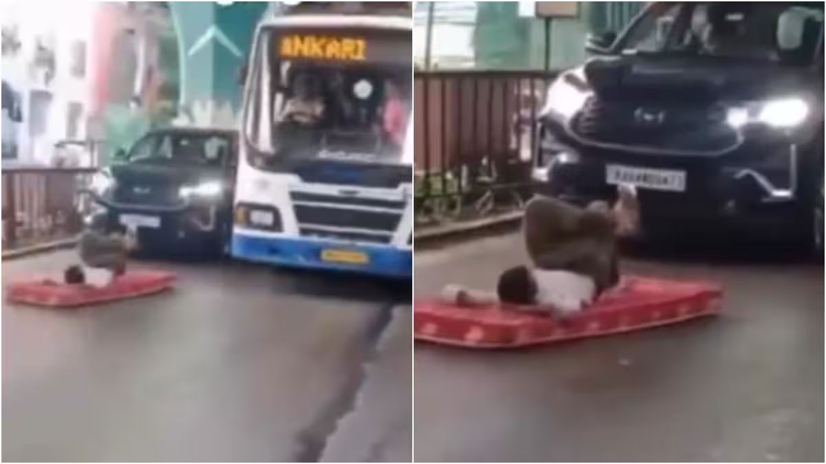 ఈ ఘటనకు సంబంధించిన వీడియో సోషల్ మీడియాలో వైరల్గా మారింది. రోడ్డు మధ్యలో మెరూన్ రెడ్ కలర్ మ్యాట్రెస్ వేసుకుని ఆ వ్యక్తి పడుకోవడం, బనశంకరి వైపు వెళ్తోన్న ఓ బీఎంటీసీ బస్సు, దాని పక్కనే ఓ కారు నిలిచివుండటం ఈ వీడియోలో స్పష్టంగా రికార్డయింది. వాహనాలు పెద్ద సంఖ్యలో నిలిచిపోయినప్పటికీ.. ఆ వ్యక్తి ఏమాత్రం పట్టించుకోకుండా కాలు మీద కాలు వేసుకుని నిద్రపోవడం చూడొచ్చు.