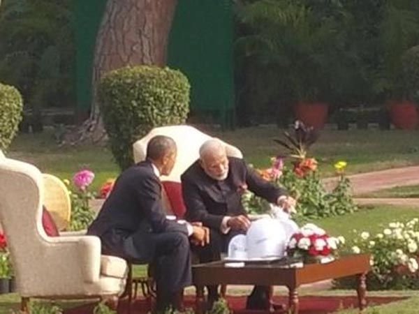 — Syed Akbaruddin (@MEAIndia) January 25, 2015 Walking & Talking. PM @narendramodi & Prez @BarackObama . pic.twitter.com/ZeZ95oCMOh