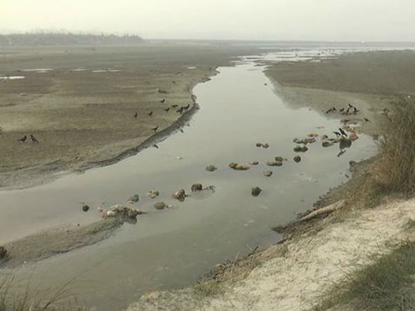 శ్రింగ్వేర్పూర్, ఫాఫామవూ ప్రాంతాల్లో నదిలో నీటి మట్టం పెరగడంతో ఒండ్రు మట్టి కొట్టుకుపోయి శవాలు బయటకు కనిపిస్తున్నాయి.