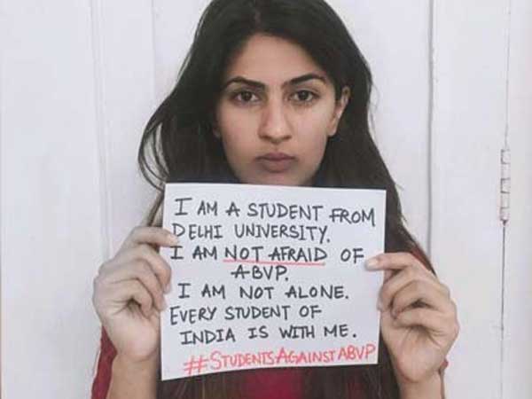 ఢిల్లీలోని రాంజాస్ కాలేజీలో ఎబివిపి కార్యకర్తలు చేసిన దాడిని ఖండిస్తూ తాను డిల్లీయూనిర్శిటీ విధ్యార్థిననని, తాను ఎబివిపి భయపడడనని ఆమె సోషల్ మీడియాలో తన వ్యాఖ్యలను పోస్ట్ చేసింది.