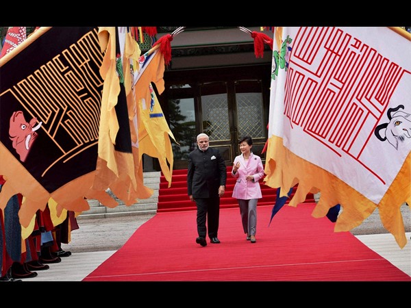 అనంతరం ప్రధాని మోడీ ఆ దేశ సైనికుల గౌరవవందనాన్ని స్వీకరించారు. అనంతరం ఆ దేశాధ్యక్షురాలు పార్క్గెన్ హితో సమావేశమయ్యారు.