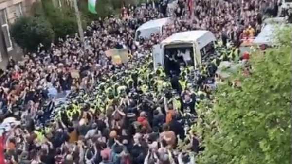 బ్రిటన్లోని స్కాటిష్ నగరం గ్లాస్గోలో ఓ అసాధారణ ఘటన చోటు చేసుకుంది. ఇమ్మిగ్రేషన్ నేరంపై ఇద్దరు భారతీయుల్ని అదుపులోకి తీసుకున్న స్కాట్లండ్ పోలీసులు చివరికి ప్రజల అసాధారణ నిరసనలతో 8గంటల తర్వాత విడిచి పెట్టాల్సి వచ్చింది. స్ధానిక హక్కుల కార్యకర్త సాయంతో ఇద్దరు భారతీయులకు విముక్తి లభించింది.