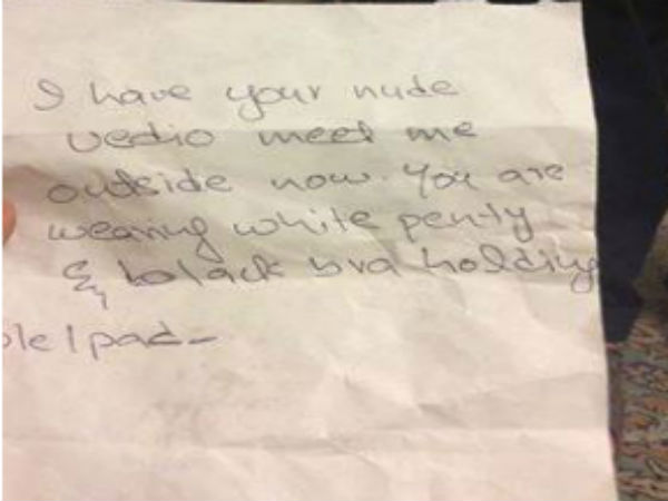 ఆమె గదిలోకి ఓ లెటర్ విసిరి పారిపోయారు. ఆ లెటర్లో రాసినవి చెప్పలేని విధంగా ఉన్నాయి. ఆమె ఏ రంగు లోదుస్తులు మార్చుకుందో, ఎలా ధరించిందో అంతా రాశారు. నీ న్యూడ్ వీడియో మా వద్ద ఉందని అందులో పేర్కొన్నారు.