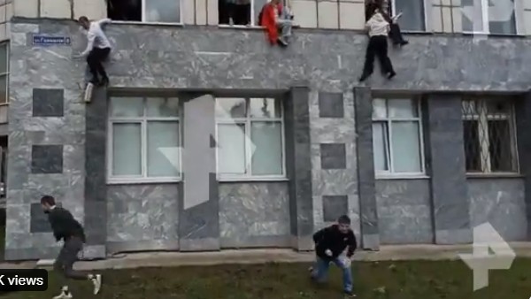 #BREAKING: Shooting reported at Russian university, harrowing footage shows students jumping out of windows to escape gunman
