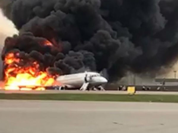 సుఖోయ్ సూపర్ జెట్-100 విమానం మాస్కోలోని షెరెమెటెవో విమానాశ్రయంలో క్రాష్ ల్యాండింగ్ అయ్యింది. ఆ సమయంలో విమానం వెనక భాగంలో మంటలు చెలరేగాయి. ఆ సమయంలో విమానం ముందు భాగం నుంచి ప్రయాణికులు బయటకు దూకేప్రయత్నం చేశారు.