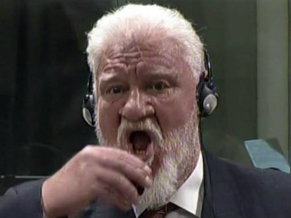 వివరాల్లోకి వెళితే... బోస్నియాకు చెందిన వార్ కమాండర్ జనరల్ స్లోబోడన్ ప్రల్జాక్ను యుద్ధనేరస్థుడిగా పరిగణిస్తూ 20 ఏళ్ల జీవితఖైదు విధించింది న్యాయస్థానం. ఈ తీర్పును సవాల్ చేస్తూ అంతర్జాతీయ న్యాయస్థానంలో అప్పీల్ చేసుకున్నాడు స్లోబోడన్.