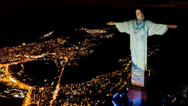 ఈస్టర్ పర్వదినాన్ని బ్రెజిల్ దేశస్తులు వినూత్నంగా జరుపుకున్నారు. అయితే వారి ఇళ్లల్లోనే ఉండి వారు ఈస్టర్ సండేను సెలబ్రేట్ చేసుకున్నారు. ప్రస్తుతం కరోనావైరస్ ప్రపంచాన్ని గడగడలాడిస్తున్న నేపథ్యంలో భగవంతుడి స్థానంలో ఉండి సేవలందిస్తున్న వైద్యులకు కృతజ్ఞతలు తెలిపే భాగంలో అక్కడి ప్రఖ్యాత విగ్రహం క్రైస్ట్ ది రిడీమర్ను డాక్టర్ గెటప్లో వెలిగించారు. అంతేకాదు కరోనావైరస్ మహమ్మారి బారిన పడి ఎక్కువగా ప్రాణ నష్టం సంభవించిన దేశాలకు సంబంధించిన జెండాలు కూడా దర్శనమిచ్చాయి. ఇక క్రైస్ట్ ది రిడీమర్ విగ్రహం కింద నుంచి ఆర్క్ బిషప్ వాక్యాన్ని బోధించారు.